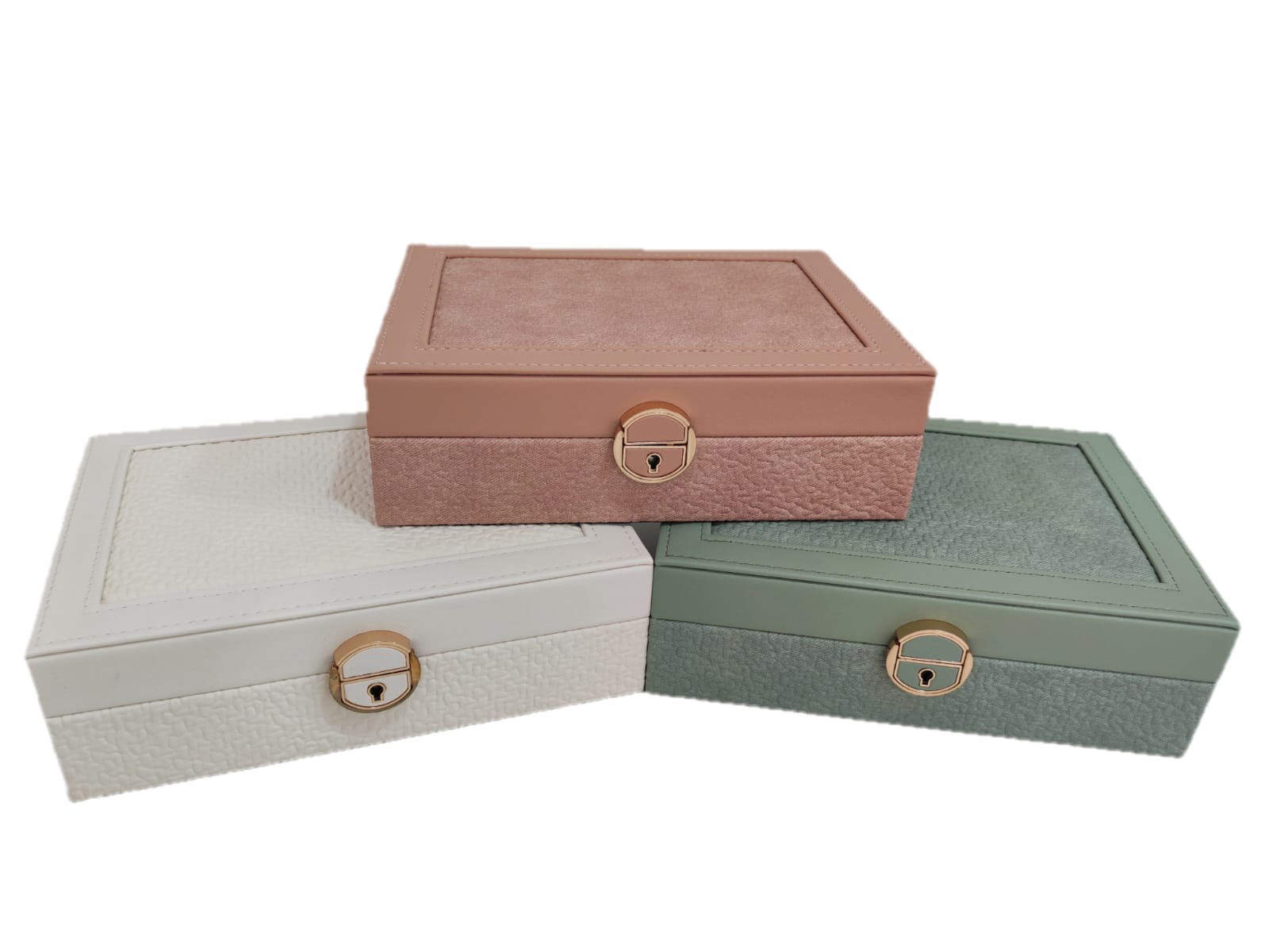 Un espacio diseñado para tesoros. Este joyero guarda aretes, cadenas y anillos con delicadeza. Su llave permite mantener todo seguro y organizado.