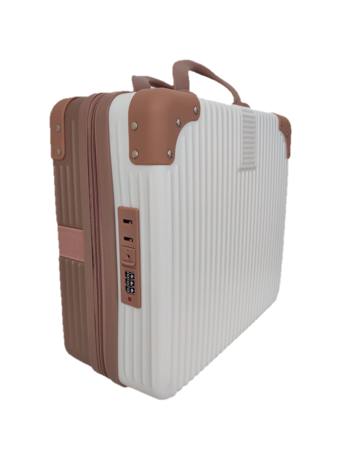 Compacta, resistente y hermosa. Su acabado rosegold deslumbra en cualquier lugar. Ideal para maquillaje, artículos personales o viajes cortos.