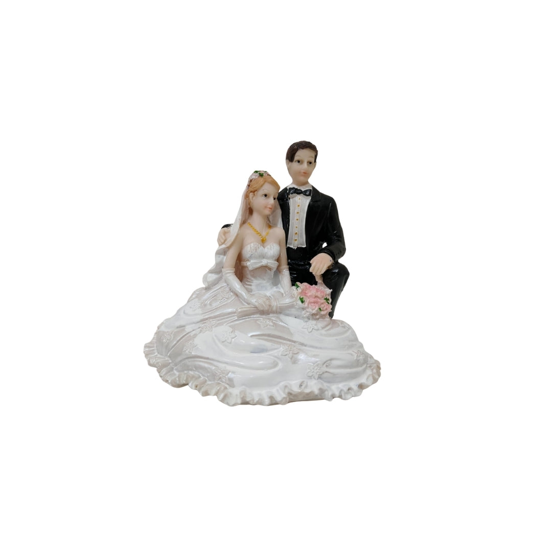 Figuras decorativas de novios en cerámica, perfectas para bodas, pasteles o recuerdos especiales.