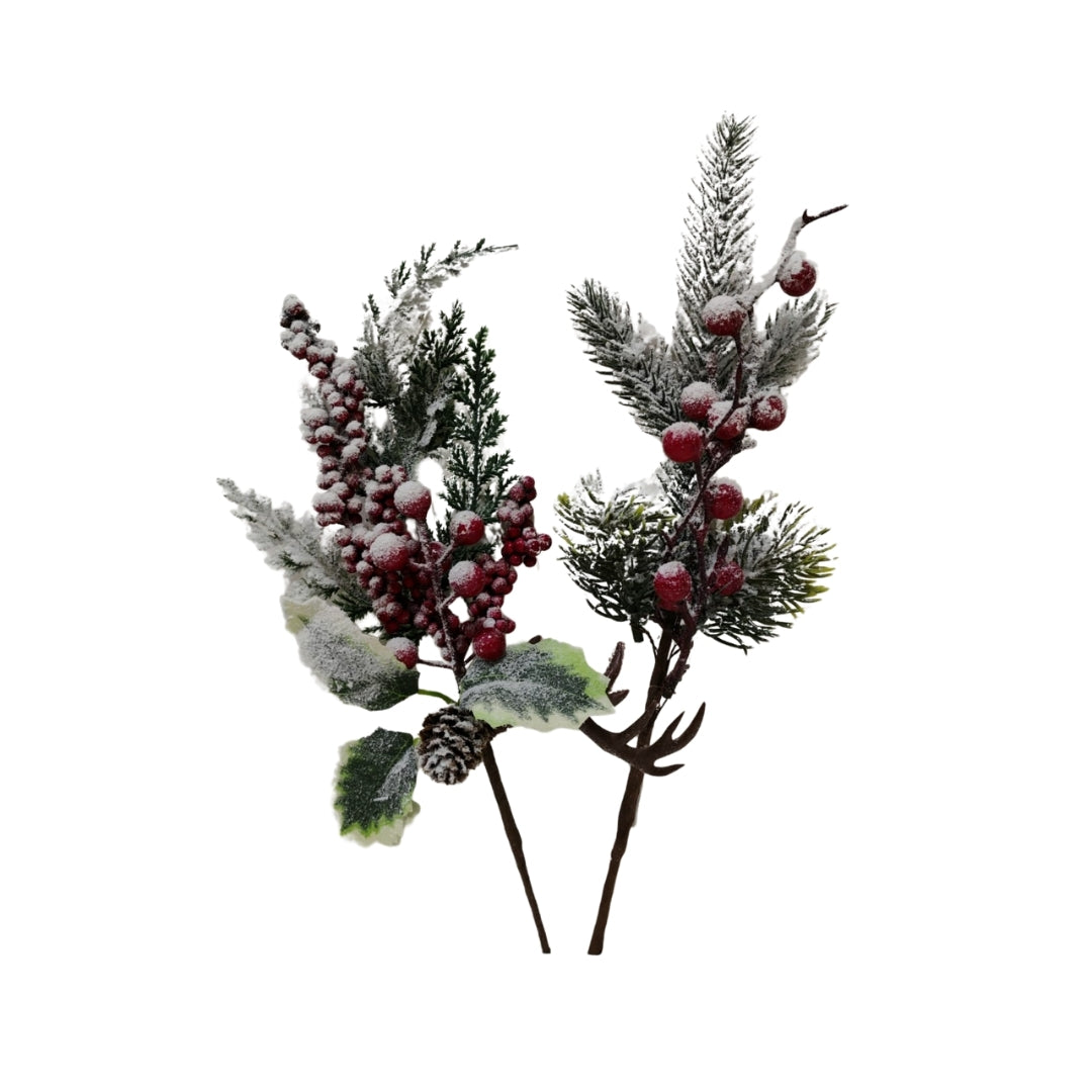 Rama navideña decorativa en diferentes diseños. Perfecta para adornar tu árbol, centro de mesa o cualquier espacio festivo.